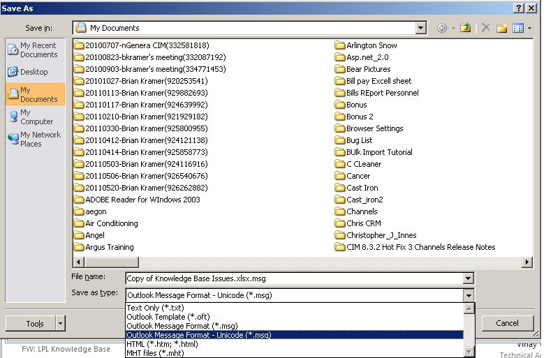 THIS ARTICLE APPLIES TO: Knowledgebase 8.3.2 thru 9.0.1 hotfix 4 PROCESS: To use an email from Microsoft Outlook as content of an article by uploading it in the Knowledgebase tool follow the below steps. 1. In Microsoft Outlook select the target...