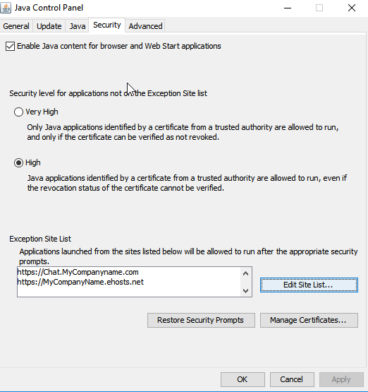 Oracle has updated their Java Runtime Environment (JRE) to add additional system checks and alert users as to the results of these checks. Starting with JRE 1.7 update 45, when running the Moxie Agent Client users will see a warning message...